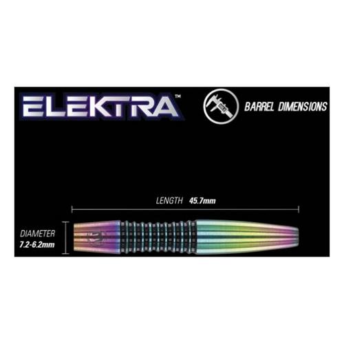 Next generation styling from the plushest looking darts range. Streamlined torpedo profile features a progressive scallop fitted with dynamic ring grip. Elektra is all about striking looks, feel and release. However you throw.