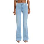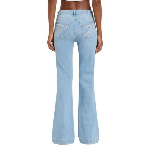 Our signature trouser jean features a wide leg with a subtle flare for a long, lean line. The medium blue wash is artfully faded for extra dimension and features our iconic 7 back pocket embroidery in a contrast white stitching.