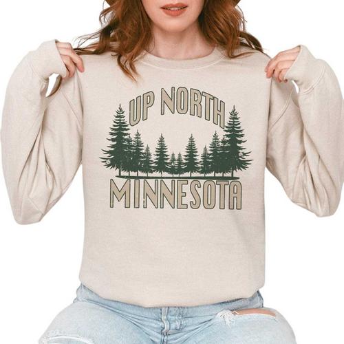 Introducing the Women's A. Blush Up North Minnesota Crewneck Sweatshirt – a cozy essential that seamlessly combines style and comfort for those who love to embrace the charm of the North. Crafted with care, this sweatshirt is perfect for anyone who appreciates the beauty of Minnesota or simply enjoys a snug layering piece for cooler days.