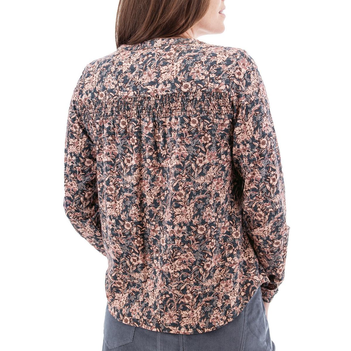 Let your wardrobe bloom with the Amaryllis Smocked Floral Top, where comfort meets chic. The all-over floral print adds a fresh, feminine vibe, while the relaxed silhouette is universally flattering. Thoughtful details like the full button-front design and button closure cuffs add a classic touch, while the smocked front and back yokes give it a new age feel.