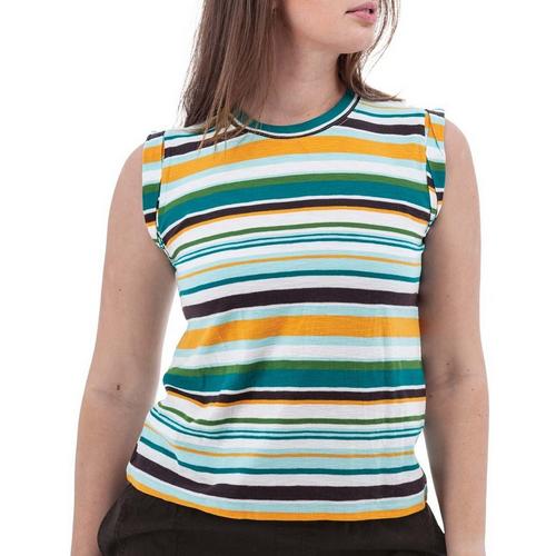 Evoking the nostalgia of carefree beach days of yore, the Summerville Striped Tank Top is designed to make you happy. The 100% organic cotton fabric is a great way to start boosting the mood. This sustainable fiber breathes, moves, and feels like a dream all while lowering its footprint. The relaxed body is another shining feature, inciting comfort and movement as it floats away from the body. Modern touches, like the hip-length hem and rolled trim on the sleeves, bring this classic style back into 2025. Pair it with shorts for a casual vibe or dress it up with dark pants – either way, this chic look is sure to inspire smiles.