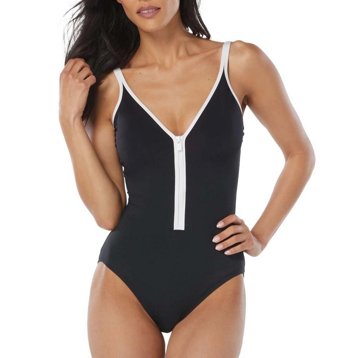 Race to your next adventure in the Beach House Sport Racy One Piece Swimsuit. In timeless solids with piping trim and contrast zip front neckline, it's subtly sexy but designed to keep up with your active lifestyle. Beach House is designed with high-end fabrics that bend with you for extra comfort, easy fit and shape retention.
