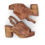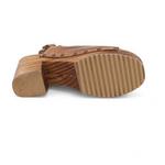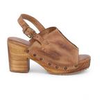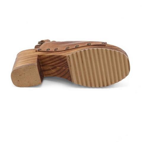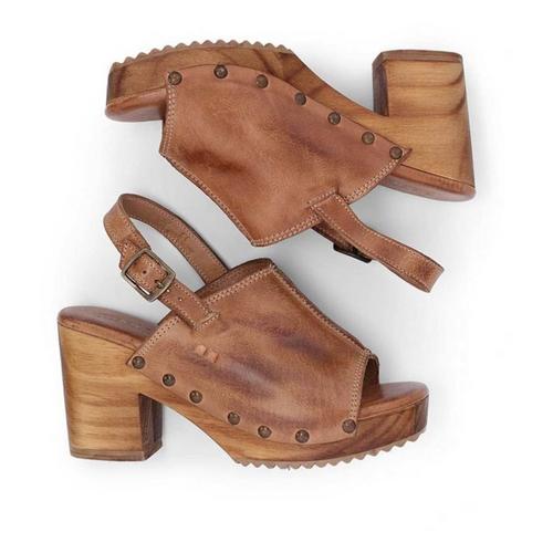 Playful saturday evenings start in MARIE. A transitional wood clog made with sustainable chilean wood, a cute little sling back, a wearable heel and a peep toe. Seam up the front, brass metal studs and double stitching complete this vegetable tanned leather heel perfect for your fall transiton.