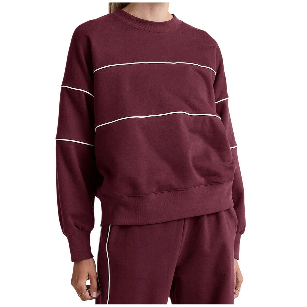 It's impossible to overdo it on comfort, so we added a little extra with an oversized fit. For classic detail, the LuxeFleece Piper Oversized Sweatshirt has contrast piping across the chest and sleeves.