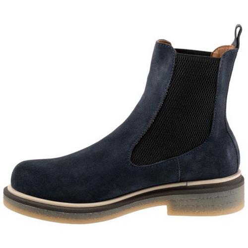 Suede leather uppers combine with Chelsea style in the Wanda boot that also features a thick sole and pull tab.