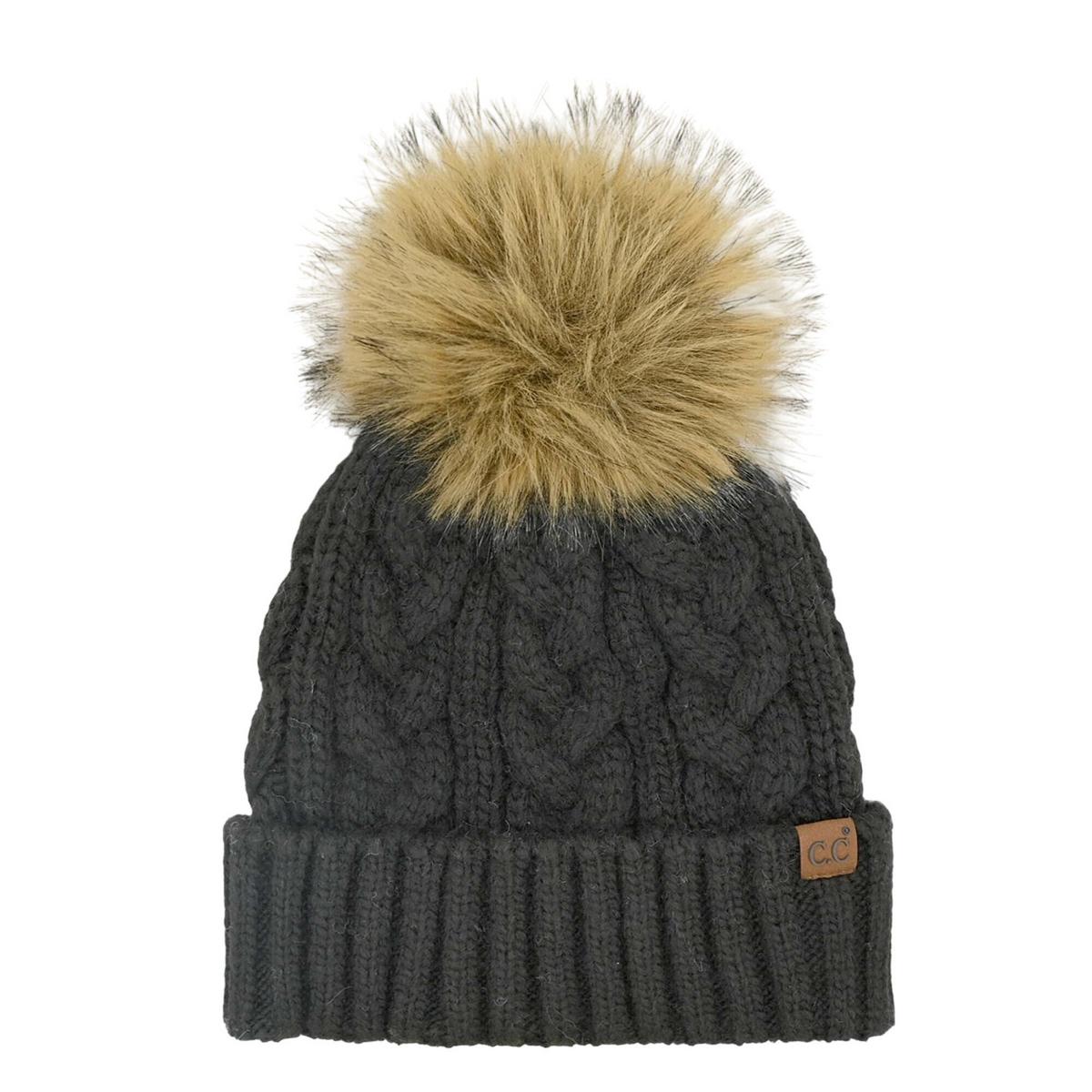 Women's C.C Satin Lined Pom Cable Knit Beanie