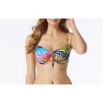 Fall in love with the Coco Reef Amour Bra Sized Underwire Cami Bikini Top in a vibrant and colorful jungle inspired print. Featuring a full adjustable neckline for more or less coverage, removable soft cups, underwire, adjustable straps, cami bra, decorative tie front, adjustable tie back and adjustable straps, it's an eye catching silhouette.
