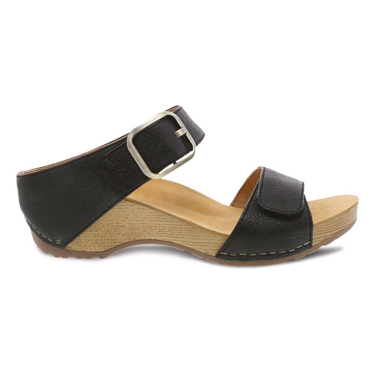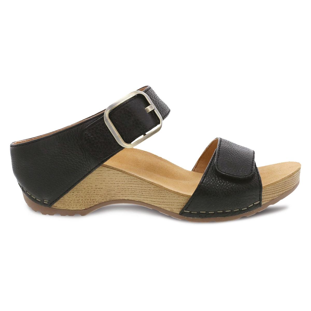 Take on sandal season in style with Tanya. This double strap slide offers multiple points of adjustability with a hook and loop closure at the forefoot and a buckle on the upper strap. Tanya features burnished leather uppers, leather linings for all day comfort, a contoured footbed with memory foam for all-day support, a lightweight, shock absorbing PU midsole, and a rubber outsole for long-lasting wear.