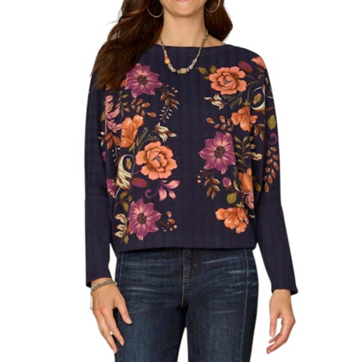 Women's Democracy Batwing Surplus Placement Print Knit Long Sleeve Boat Neck Shirt