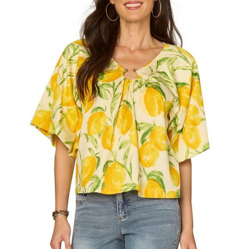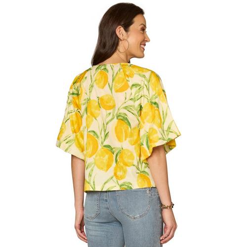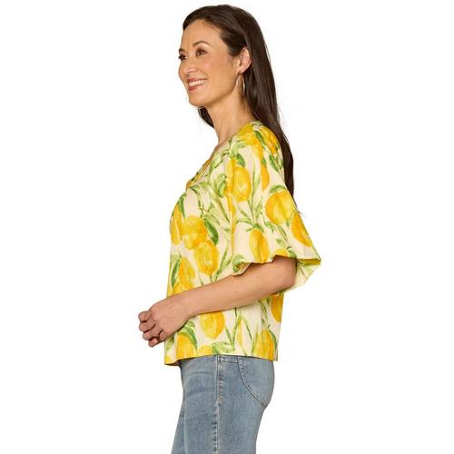 Women's Democracy Bubble Bell Sleeve Printed Woven V-Neck Shirt