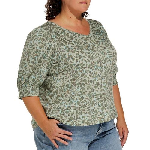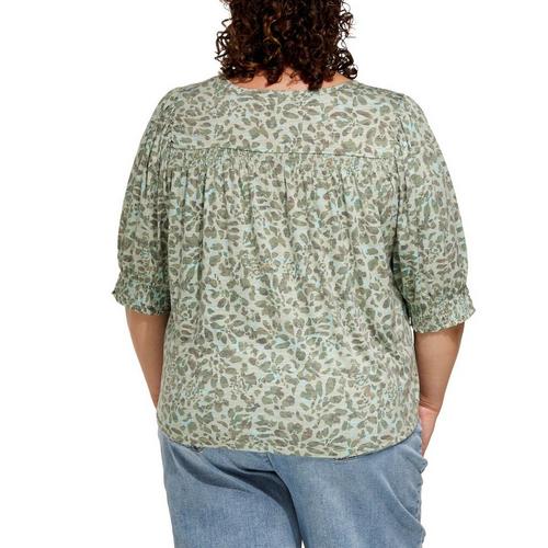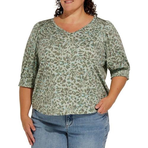 Women's Democracy Plus Size Hem Printed Knit 3/4 Sleeve V-Neck Blouse