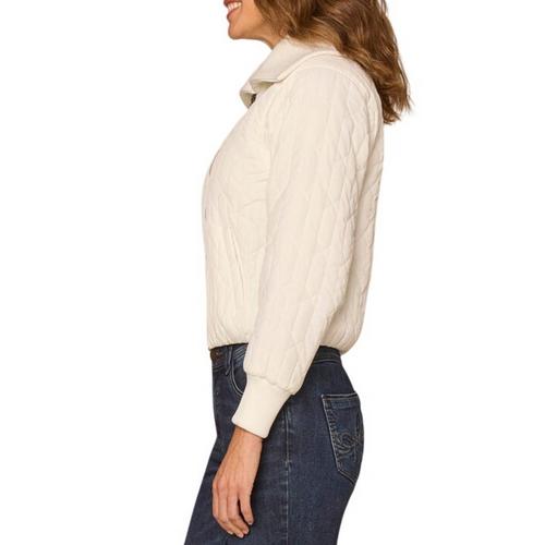 {"reviews":[],"offset":0,"limit":10,"total":0,"gtin":"198819553746"}"Full Description:\nDon’t mask your look when it gets chilly. Instead, reach for this on-trend quilted sweater jacket, featuring long banded sleeves, a collar neck, and a zip front.\n\nSpecifications:\n\u003cul>\n\u003cli>This jacket has a relaxed fit.\u003c/li>\n\u003cli>Front length approx. 23 1/4"\u003c/li>\n\u003cli>Back length approx. 22 1/2"\u003c/li>\n\u003cli>Fits true to size.\u003c/li>\n\u003cli>Self: 100% Polyester\u003c/li>\n\u003cli>Contrast 1: 98% polyester, 2% spandex\u003c/li>\n\u003cli>Contrast 2: 100% polyester\u003c/li>\n\u003cli>Machine wash cold, inside out with like colors in a laundry bag. Gentle cycle. Only non-chlorine bleach when needed. Tumble dry low. Iron on lowest setting, on reverse side only.\u003c/li>\n\u003c/ul>\n"