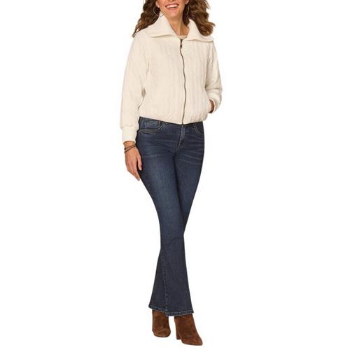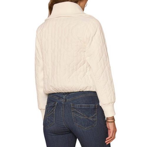 Don’t mask your look when it gets chilly. Instead, reach for this on-trend quilted sweater jacket, featuring long banded sleeves, a collar neck, and a zip front.