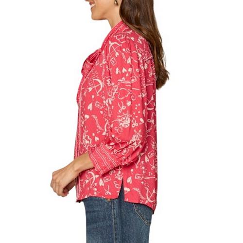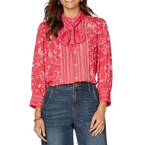 Women's Democracy Scallop Edge Tipping Woven 3/4 Sleeve Blouse