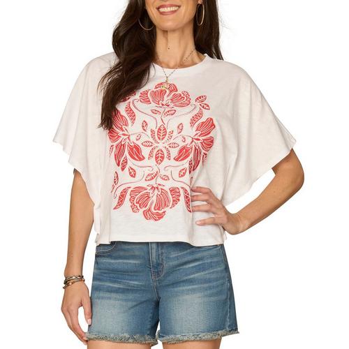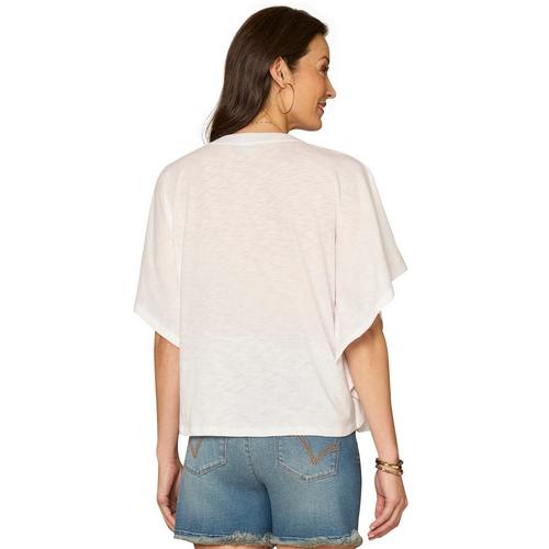 Women's Democracy Shirtail Knit Poncho Style With Embroidered Detail T-Shirt