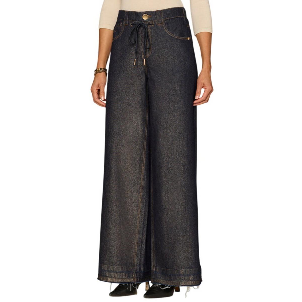 {"reviews":[],"offset":0,"limit":10,"total":0}"Full Description:\nThe Wide Leg is fitted through the hips with a relaxed, wide opening through the legs. Made with a cinched drawstring waist, release hem, and "Ab"leisure design details that strike a balance between comfortable and polished.\n\nFeatures:\n\u003cul>\n\u003cli>• “Ab”leisure design\u003c/li>\n\u003cli>• Skyrise\u003c/li>\n\u003cli>• Slightly arched back yoke\u003c/li>\n\u003cli>• Button and zip fly closure with cinched drawstring waist\u003c/li>\n\u003cli>• Five-pocket styling\u003c/li>\n\u003cli>• Release hem\u003c/li>\n\u003cli>• Indigo\u003c/li>\n\u003c/ul>\n\nSpecifications:\n\u003cul>\n\u003cli>Skyrise approx. 11 1/4"\u003c/li>\n\u003cli>Inseam approx. 32"\u003c/li>\n\u003cli>Leg opening approx. 24"\u003c/li>\n\u003cli>Fits true to size.\u003c/li>\n\u003cli>100% cotton\u003c/li>\n\u003cli>Turn garment inside out. Hand wash cold separately. Use only non-chlorine bleach when needed. Line dry. Iron on lowest setting, on reverse side only.\u003c/li>\n\u003c/ul>\n"