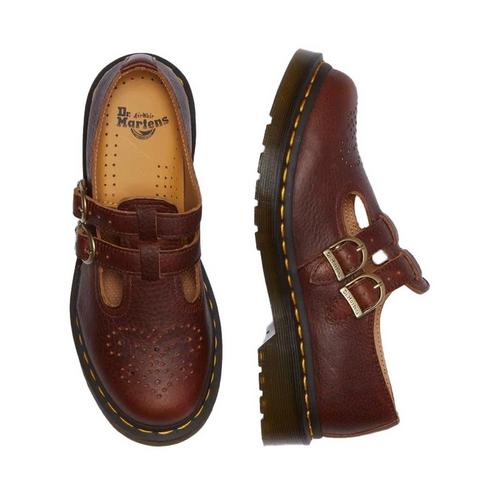 Back in the 80s, our 8065 shoe turned the tradition of impractical women’s footwear on its head. Fusing a classic T-bar fastening with a rugged AirWair sole, the well-trodden silhouette remains a favorite to this day. This edition stays true to the Original construction, with tough Smooth leather and our signature yellow welt stitching.