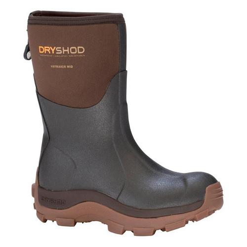{"reviews":[],"offset":0,"limit":10,"total":0,"gtin":"810228032253"}"Full Description:\nHard-Working Farm Boots<br /><br />Tough conditions call for a tough boot – the Haymaker is ideal for messy, rugged outdoor terrain!<br /><br /><strong>Details:</strong>\n<ul>\n\t<li>DS1 molded outsole for grip on rugged terrain</li>\n\t<li>Compression molded non-pigmented gum rubber outsole</li>\n\t<li>EVA mid-sole for comfort and cold-block</li>\n\t<li>Removable molded EVA sockliner</li>\n\t<li>Nylon shank</li>\n\t<li>Comfort Zone: -20F to 75F</li>\n</ul>\n\nFeatures:\n\u003cul>\n\u003cli>5mm DENSOPRENE® FOAM INSULATED BOOTIE: Keeps out the cold & wet. Keeps in warm & dry.\u003c/li>\n\u003cli>Mid-height design offers ankle support and protection\u003c/li>\n\u003cli>Rated for comfort in temperatures from -20F to 75F\u003c/li>\n\u003cli>Removable EVA sockliner for customized comfort and easy cleaning\u003c/li>\n\u003cli>Comfortable EVA midsole provides cushioning and cold-blocking\u003c/li>\n\u003cli>Nylon shank provides enhanced stability and support\u003c/li>\n\u003cli>DS1 outsole provides superior grip on rugged terrain\u003c/li>\n\u003cli>Waterproof construction keeps feet dry in wet conditions\u003c/li>\n\u003cli>100% WATERPROOF: Designed and built to be 100% waterproof from top to bottom.\u003c/li>\n\u003cli>CONVENIENT BACK-PULL TABS: Sturdy pull tabs for easy-on/easy-off convenience and safety.\u003c/li>\n\u003cli>HYDROKOTE® WATER-REPELLENT: No more soggy boots. Water rolls off and dries in seconds.\u003c/li>\n\u003cli>4-WAY STRETCH BREATHABLE AIRMESH LINING: Promotes airflow to keep your feet dry and comfortable.\u003c/li>\n\u003cli>EASY-ON/EASY-OFF: 4-way stretch materials and generous heel kick for easy-on/easy-off convenience.\u003c/li>\n\u003cli>ROLL-DOWN CALF PIPE: Roll down the top to tuck in your pant leg or vent in warm temperatures.\u003c/li>\n\u003cli>GENUINE NATURAL-RUBBER OVERLAYS: Only genuine hand-laid rubber. No PVC, PU, or TPR.\u003c/li>\n\u003cli>SUPERIOR STABILITY: Reinforced tuck board with rigid shanks for added stability.\u003c/li>\n\u003cli>SUPERIOR FIT AND COMFORT: Slipper-soft comfort and sized to athletic-shoe standards.\u003c/li>\n\u003c/ul>\n\n"