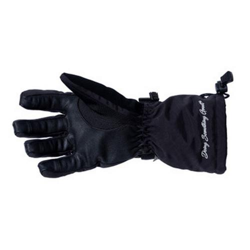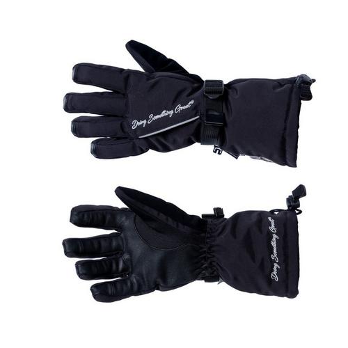 Our women's black Trail 2.0 winter gloves have been re-designed and are back for this season! They will immediately be your favorite glove in your gear bag! Our black waterproof gloves feature a goatskin leather palm, for great comfort and feeling and are heavily insulated to keep you very warm. The back of the hand also has a pocket to add a heat pad for when temperatures are unbearable. Also on the back of the hand is Cordura reflective material that is ideal for giving hand signals while riding snowmobiles at night. Did we mention this women's snow glove is all black giving it a timeless look that will match any gear? The gauntlet is nice and big to go over your jacket sleeve and keep the wind out.