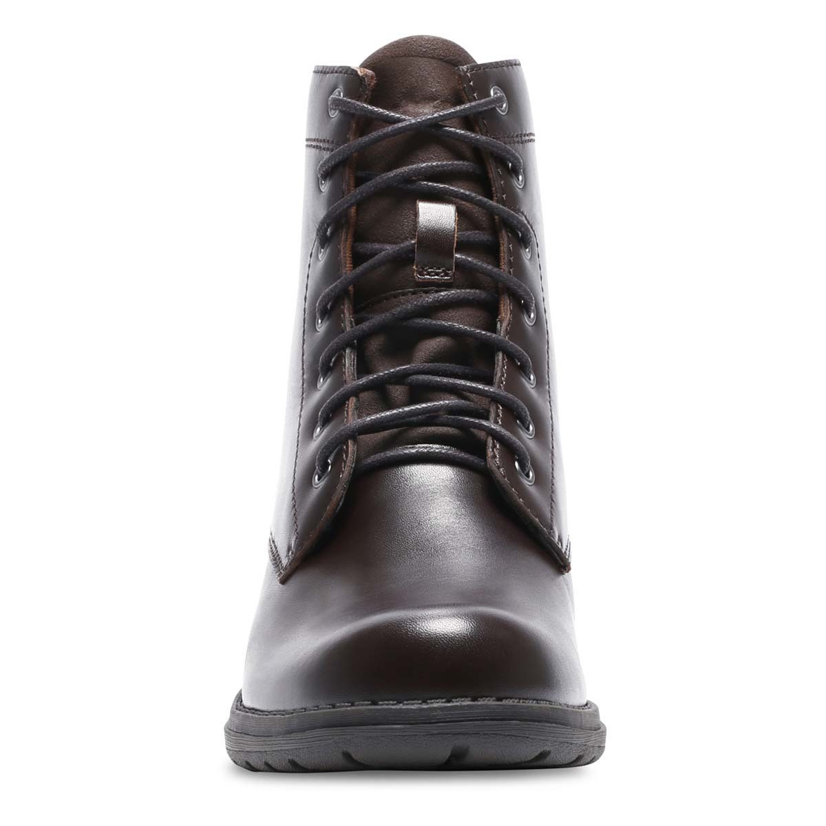 Lace up the Blair boot and tackle your day in casually chic comfort. Full-grain, fabric-lined leather upper. Waxed cotton laces and tongue-mounted lace stay. Heel zipper for easy on/off. Soft, breathable fabric-lined insole. Eastland Exclusive Active Memory Foam comfort insole supports and conforms to the curves of your foot. Shock absorbing and flexible TPR rubber outsole for great comfort, slip resistance and durability. Boot Height: 5". Heel Height: 1 1/2".