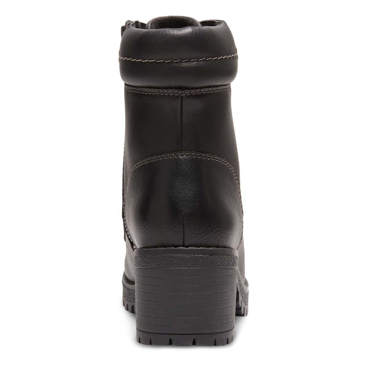 Plain toe lace-up boot with a puffed collar and side zipper. A side zipper makes this boot easy on and off. Synthetic upper with fabric lining. Fully-lined, cushioned insole for all-day comfort. Flexible rubber outsole for great comfort, slip resistance, insulation and durability. Boot Height: 5 1/4". Heel Height: 2 3/8".