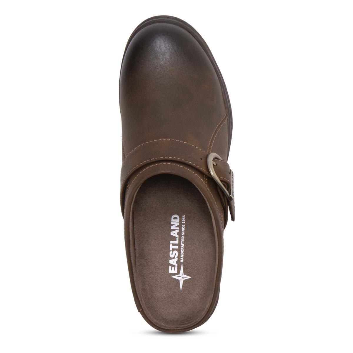 The Cameron buckle clog complete with hand stitched details for any outfit. Fabric-lined synthetic upper. Fabric-lined synthetic upper. TPR outsole for great flexibility, slip resistance, light weight and durability. Heel Height: 2 1/4".