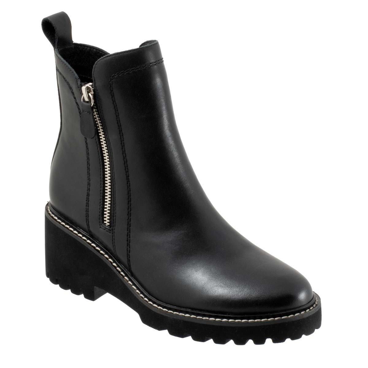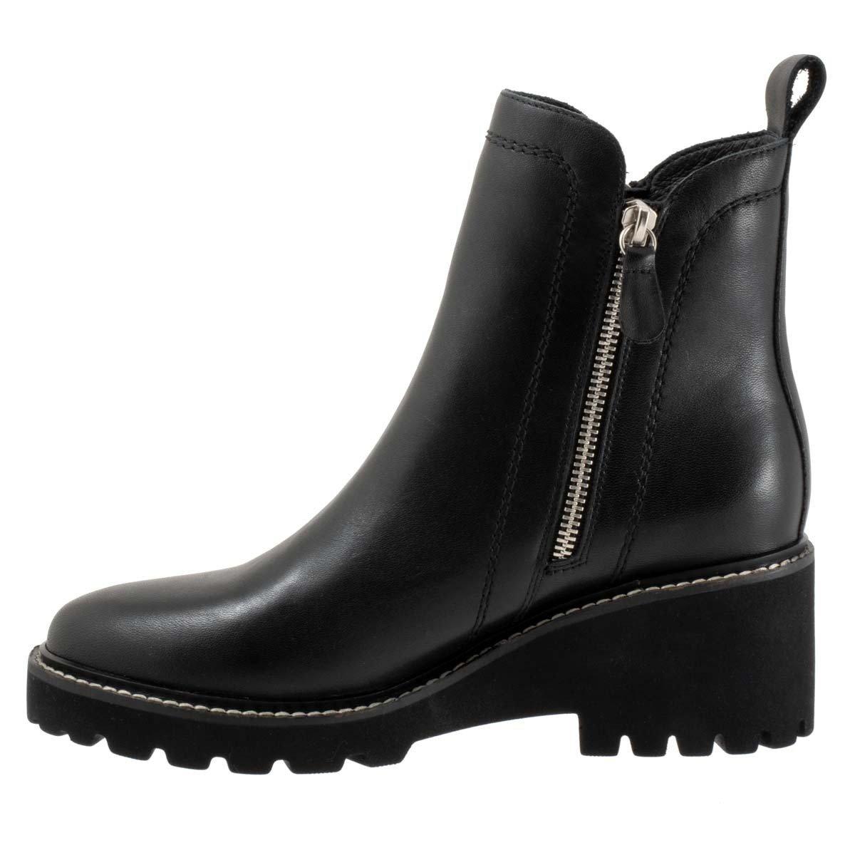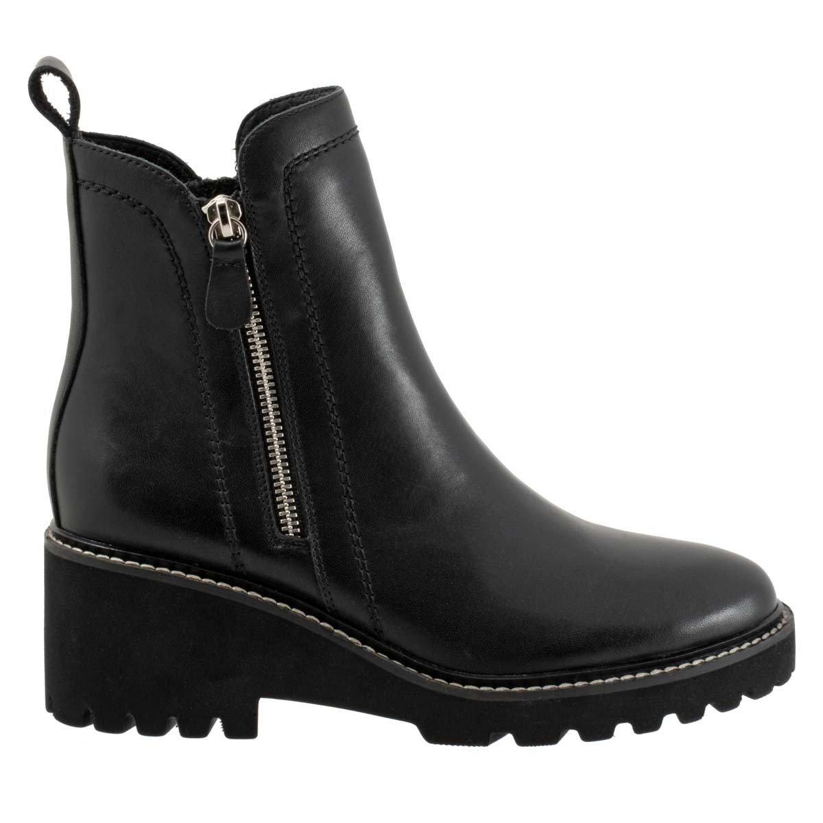 The Parson is the versatile addition to your shoe collection. Easy to wear and walk in, these wedge heeled boots are poised on a smooth platform sole with expert attention to detail. The sleek profile is continued through the upper, with two zips on either side and adjacent stitching detail.
