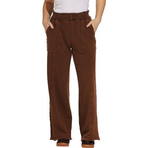 No matter what you’re doing, you’ll always be cute and comfortable wearing our Dolly Utility Lounge Pant. Soft knit cotton blend fabric shapes a high elastic waistband. Faux fly with dual snap closure and spacious pockets accent the front. Wide leg openings end at raw ankle-grazing hems.