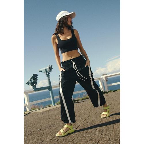 Bring the barrel silhouette to your next adventure in these sleek and flowy pants. Made with a 100% nylon fabrication with a water-resistant finish for durable protection on the go, in a flattering high-waisted, 7/8 length silhouette.