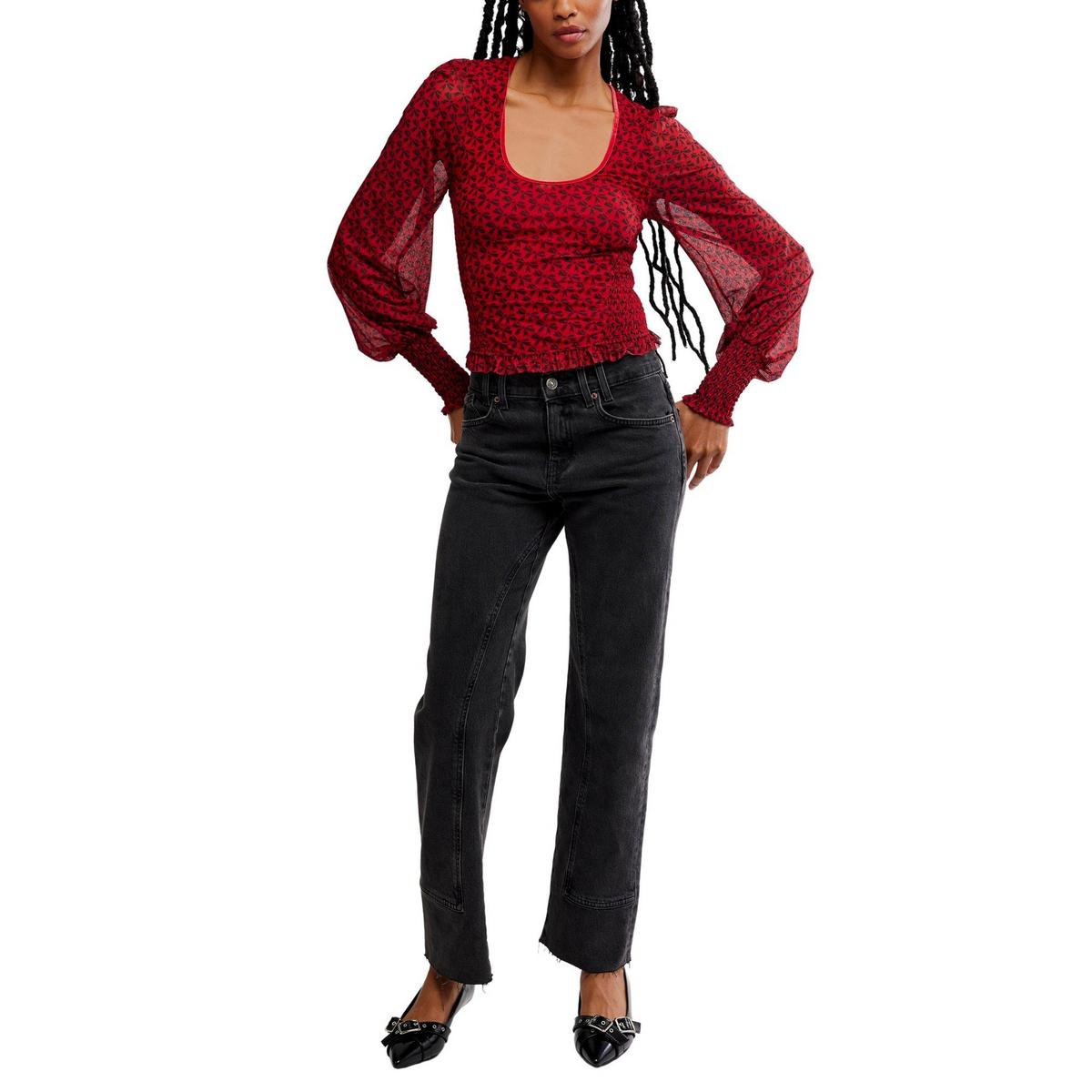 Women's Free People Dottie Printed Knit Long Sleeve Scoop Neck Shirt
