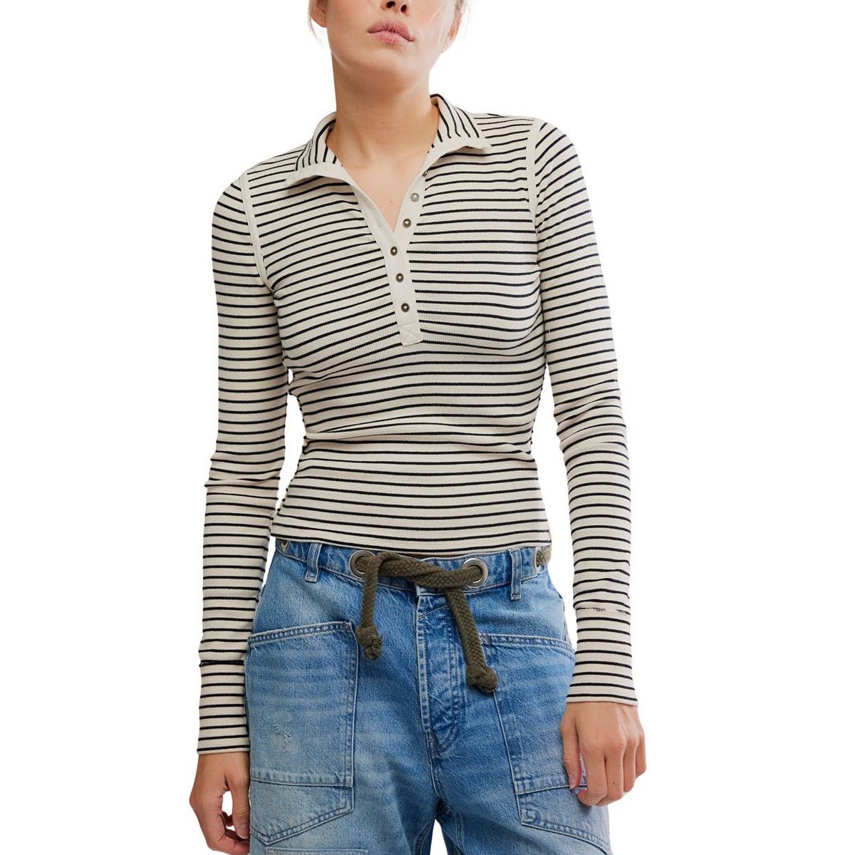 Women's Free People We The Free Lake Stripe Long Sleeve Mock Neck Henley