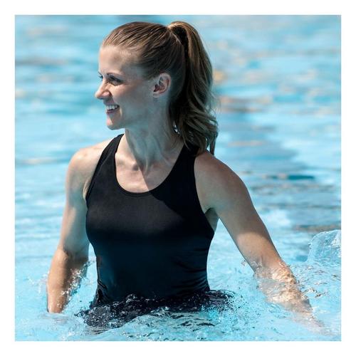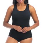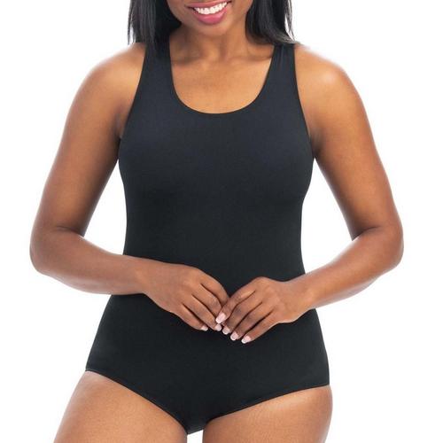The Dolfin Women's Aquashape Conservative Lap Suit comes in a solid color and features more leg coverage than other suits creating added comfort for those who desire it.