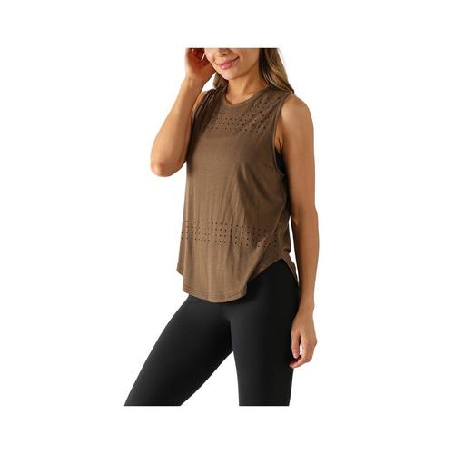 Strategically placed laser cut ventilation makes this the perfect loose fit tank to top off any activity. Flattering features such as a crew neck and muscle tank fit, take this tank to the next level, making it your go-to piece for workouts, coffee dates, and everything in between.