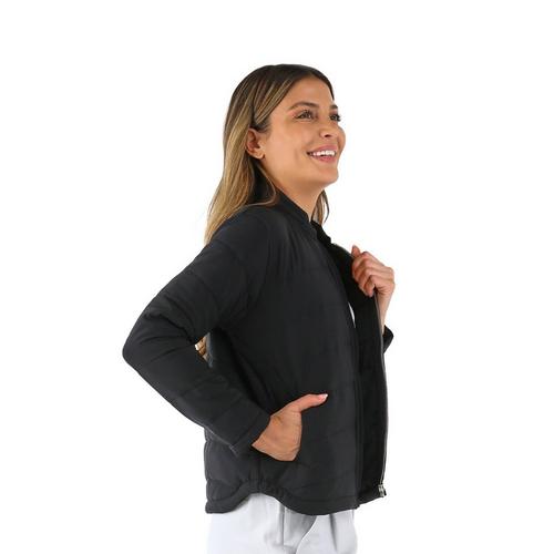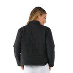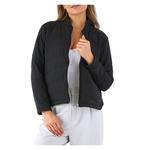 Let’s get wavy! This lightweight jacket makes the perfect outer layer for any season. Inspired by a classic bomber silhouette, quilted with asymmetric “waves” that create a flattering, elevated look. Featuring side slit pockets and a sleek zipper. Model is wearing an XS.
