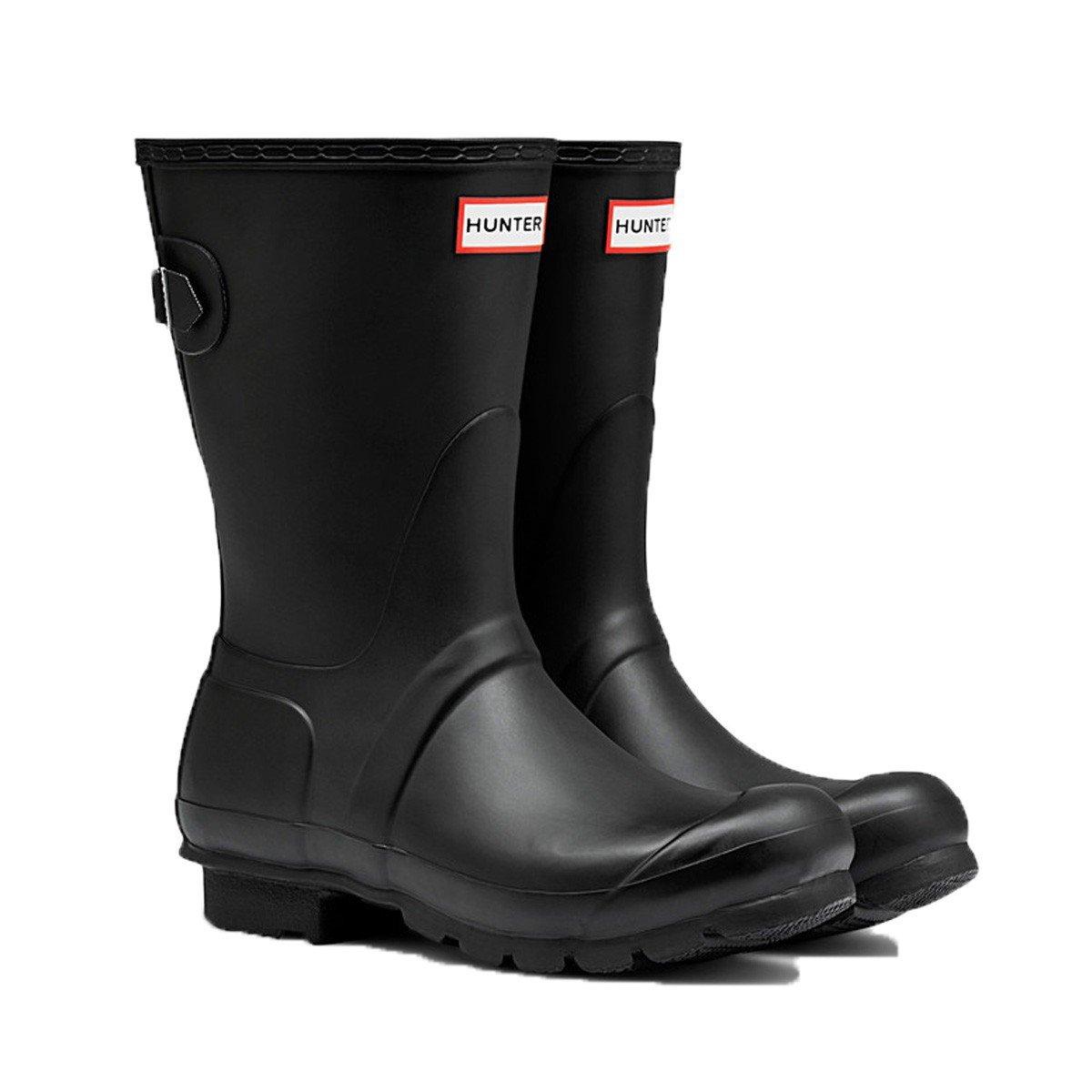 As a signature staple for rainy days, the Women's Hunter Original Short Adjustable Back Rain Boots are a must-have for your wardrobe. With a matte finish and polyester lining, these rain boots feature a comfortable, yet durable rubber outsole; while the original pattern tread gives you the traction you need. These signature rain boots are crafted from natural vulcanized rubber for a timeless style while providing an adjustable gusset and buckle for a customized fit. With a featured design that's ready for any outdoor adventure, these rain boots provide a comfortable, traditional tailored Hunter fit.