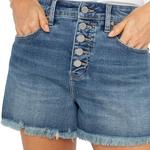 Take a break from you traditional denim short! Cut in an A-line silhouette, a fray hem and an exposed button fly, you can dress these up or down just like you would your denim!
