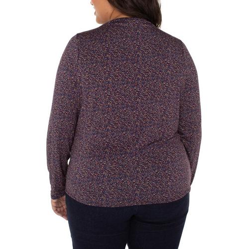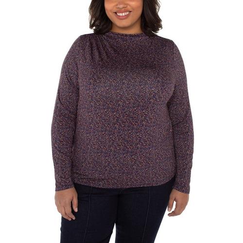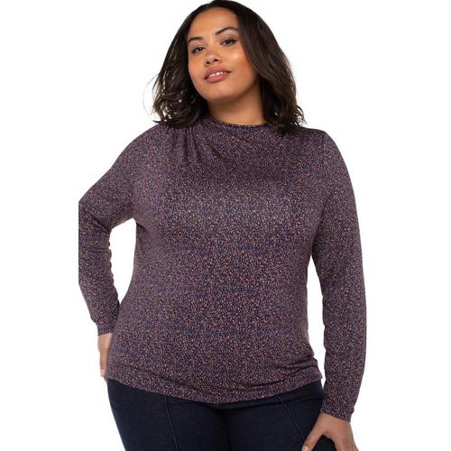 Women's Liverpool Los Angeles Plus Size Knit Top With Shirring Long Sleeve Mock Neck T-Shirt