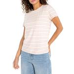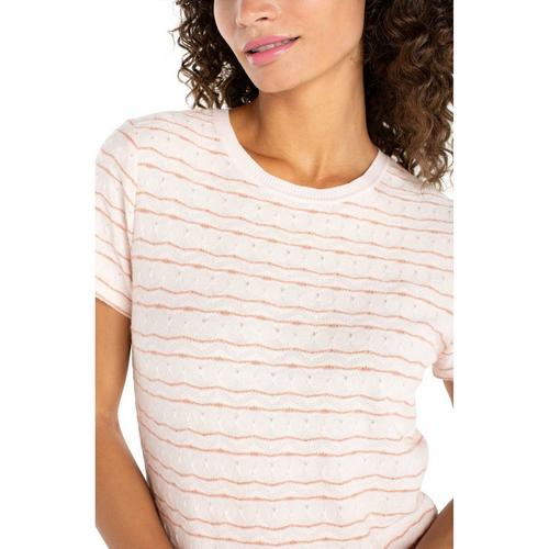 {"reviews":[],"offset":0,"limit":10,"total":0,"gtin":"199386012612"}"Full Description:\nCasual, comfortable, and playful — this short sleeve crew neck knit tee features ribbed trim and a fun pink wavy stripe pattern. Soft and easy to wear, it pairs perfectly with jeans, skirts, or shorts for everyday style.\n\nSpecifications:\n\u003cul>\n\u003cli>95% Polyester 5% Spandex\u003c/li>\n\u003c/ul>\n"