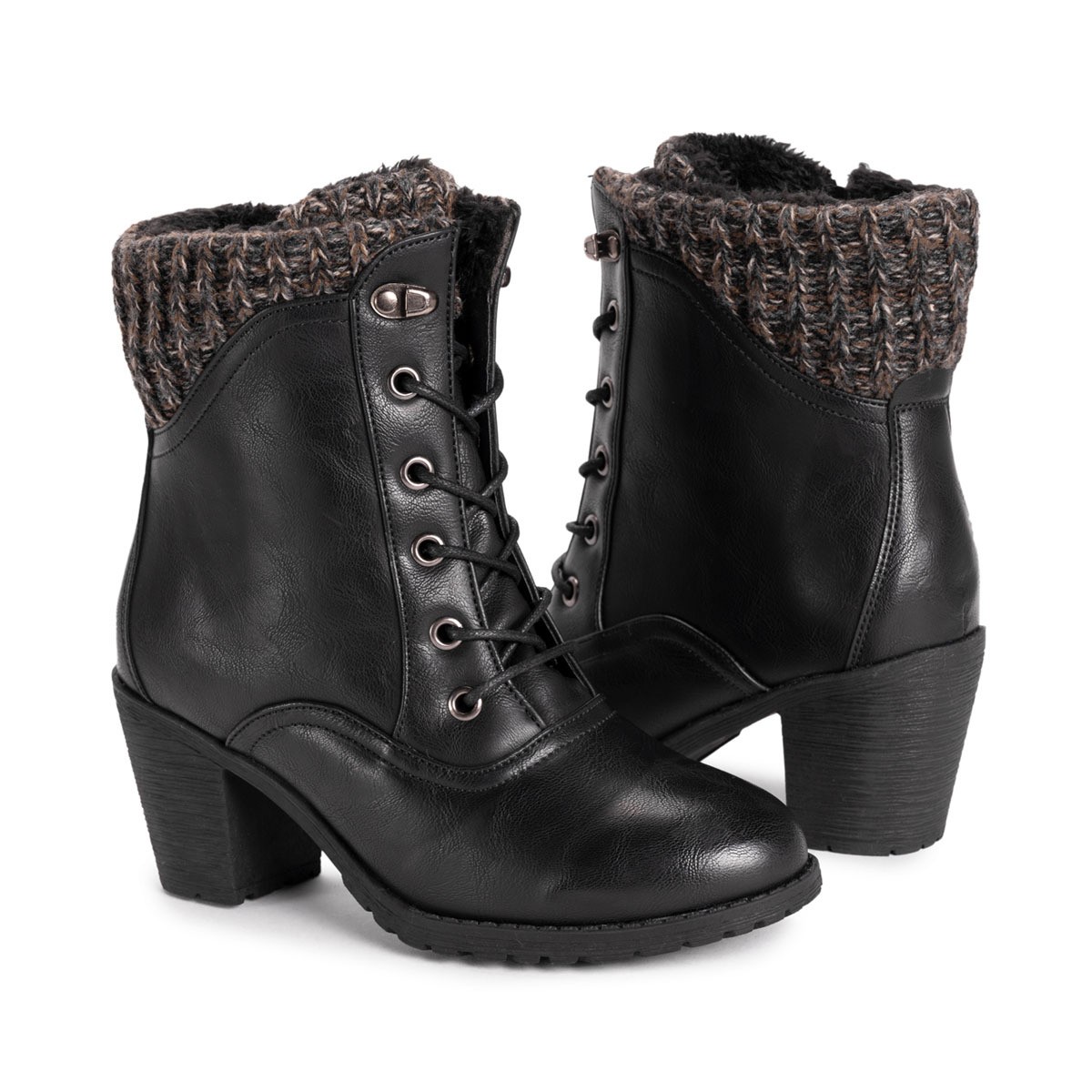 Step confidently into fall with LUKEES by MUK LUKS® Women's Lacy Lori Boots. With a sweet knit cuff and stacked block heel, these water-resistant boots will keep toes comfy with memory foam insoles and soft, faux fur lining.