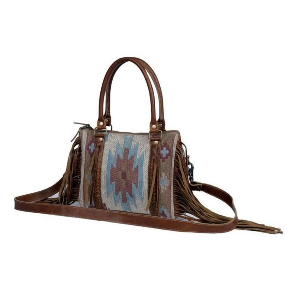 Unleash your bold, stylish side with the Women's Myra Bag Blue Rays Concealed Carry Bag. This eye-catching carry bag is more than just a fashion statement—it's a symbol of strength, empowerment and practicality. Crafted from superior quality leather, this bag is incredibly durable and designed to stand the test of time. The blue rays pattern is a unique blend of vibrant and subtle hues, creating a stunning visual appeal that will make you stand out in any crowd. Its beautiful rustic design is a perfect mix of vintage charm and modern style, making it an ideal accessory for any outfit. But the Myra Bag Blue Rays Concealed Carry Bag is not just about looks. It is also about functionality. This bag comes with a special concealed compartment, designed to securely hold your self-defense weapon. With this bag at your side, you can confidently step out, knowing you are prepared to protect yourself if need be.