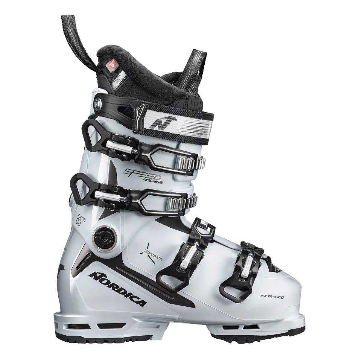 Enjoy everything the mountains have to offer with Nordica’s Speedmachine 3 85 W. Inspired by decades of refinement, this legendary women’s all-mountain boot has been completely redesigned for even greater comfort and performance. Nordica’s 3 Force technology maximizes the transmission of energy from the leg and foot to the liner and shell for exceptional power and efficiency. The boot’s softer flex offers incredible comfort and ease of use without sacrificing control. And for a truly personal fit, its liner and shell can readily be customized. Whether you’re lapping groomers with friends, exploring the bumps and trees, or chasing powder, Nordica’s Speedmachine 3 85 W allows you to forget about your feet and simply enjoy the day.