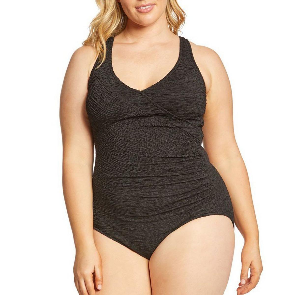 Perfect for any shape, the Penbrooke Women's Krinkle Mock Surplice Chlorine Resistant One Piece is made out of a highly elastic material that will stretch with you when you're out by the pool, you won't ever have to worry about covering up again.