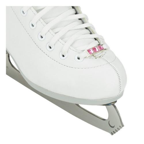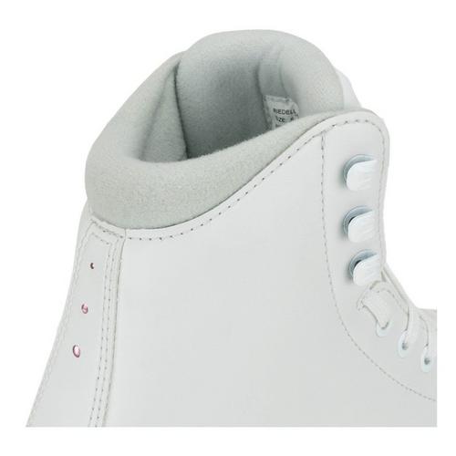 The Riedell Ruby features synthetic reinforcements and light support for enjoyment on the ice. This skate set also offers a modern ergonomic toe fit for out-of-the-box comfort. The plush hand rolled collar provides relief to the Achilles tendon and a flex notch design facilitates proper knee and ankle bend. Beyond the technical features, each skate is adorned with faux crystals in the backstay and a decorative gem lace bar for added sparkle on the ice.