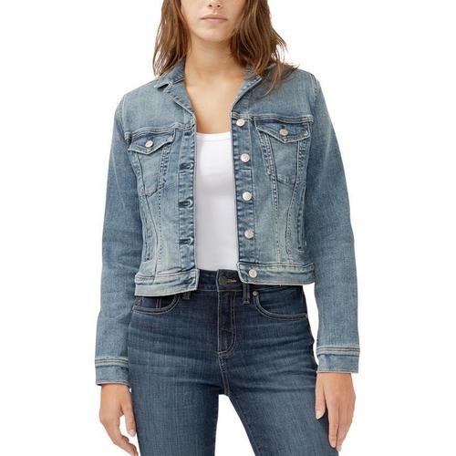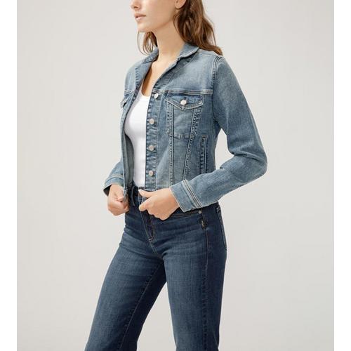 Women's Silver Jeans Co. Fitted Notched Collar Cropped Denim Jacket