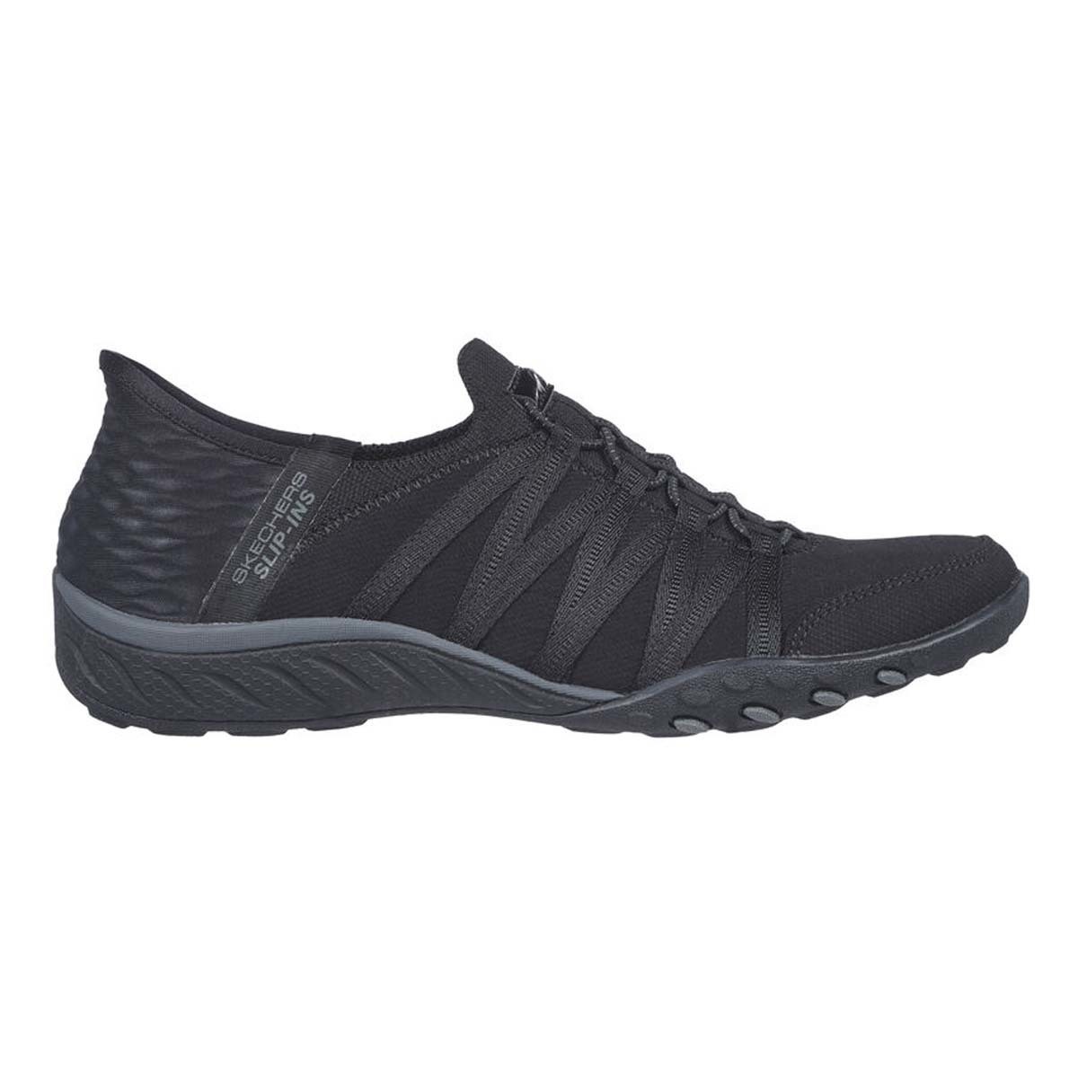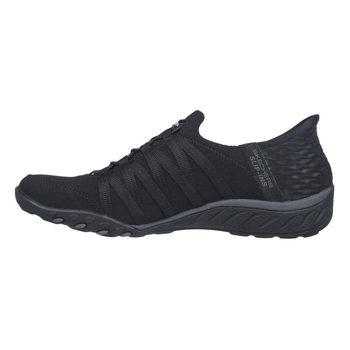 Simply step-in and go with comfort and style wearing Skechers Hands Free Slip-ins® Relaxed Fit®: Breathe-Easy - Roll-With-Me. Designed with our exclusive Heel Pillow™, this TOUCHLESS FIT® style features a soft knit mesh upper and a cushioned Skechers Air-Cooled Memory Foam® insole.