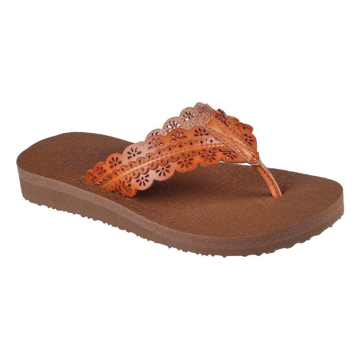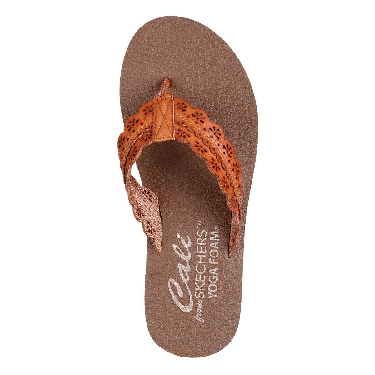 Add a little glam and comfort to your look with Skechers Meditation. This vegan thong sandal features a synthetic upper with floral faux pearl embellishments and a cushioned Yoga Foam® footbed.