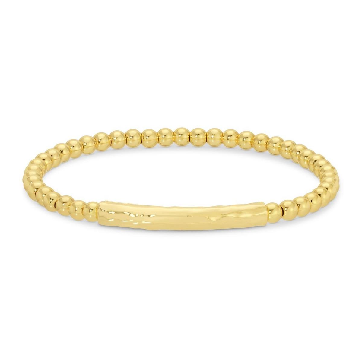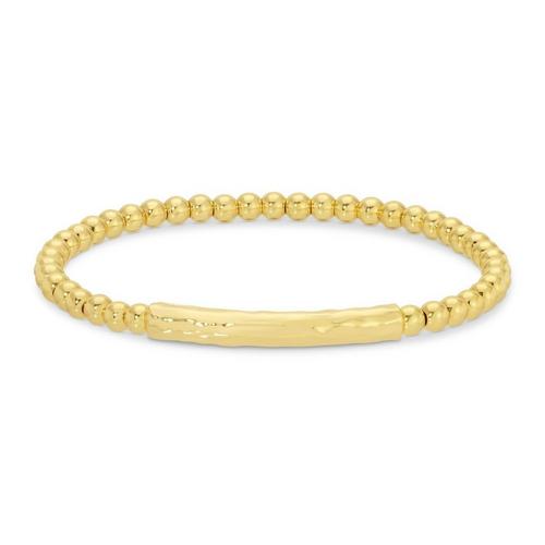 Bracelet- Lightly textured curved bar on 4mm beaded stretch bracelet