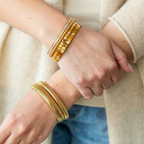 Crafted from premium stainless steel, this bangle is available in two stunning finishes: radiant 18K gold plating for a luxurious, warm glow, or highly polished stainless steel for a brilliant, modern silver tone. Both options provide exceptional shine and are built to last. An ideal gift for women who appreciate jewelry, water-resistant bracelets, or sleek, modern bangles. Perfect for birthdays, anniversaries, or "just because"!