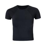 Cropped fit with a crew neck and short sleeves.