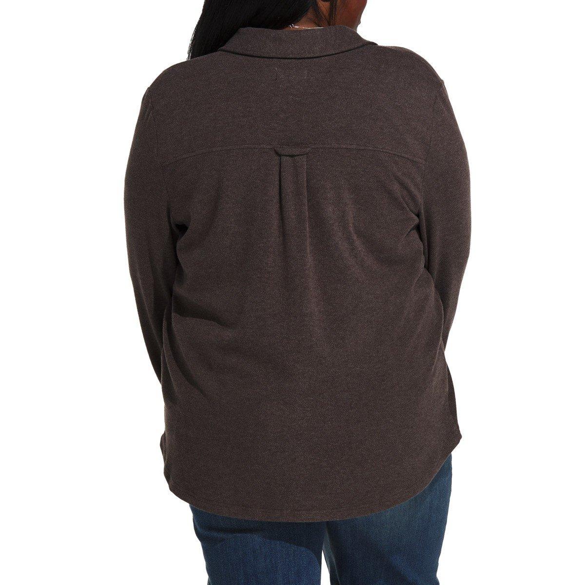 Collared necklineButton front closureDual chest pocketsShirt tail hem